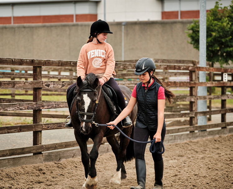 Also, can include horse care e.g. grooming feeding mucking out, leading, etc.
